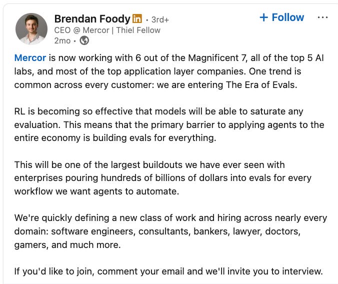 Brendan Foody, founder and CEO of Mercor.ai (an AI-powered hiring platform launched in 2023 and already valued at $2 billion) puts it this way:
