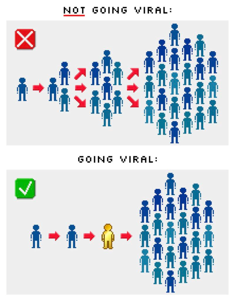 Tom Orbach summarized a valuable lesson from Derek Thompson’s “Hit Makers” that’s worth keeping in mind. We tend to think of viral growth as a chain reaction: 1 → 10 → 100 → 1,000 → 100,000….In reality, this is how most things go viral: 1 → one huge share → 100,000. Distribution is determined more by who shares it, than by how many do.