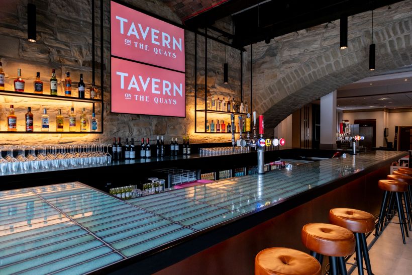 The bar and restaurant has been relocated from the first floor to ground level, utilising what was previously unused space in Grade II listed arches beneath the six-story hotel. The arches date back to 1855 and have been restored to show off the original stone, brick and steel. A new dining concept, Tavern on The Quays, has been introduced and opened its doors on 22nd September to hotel guests and the general public.